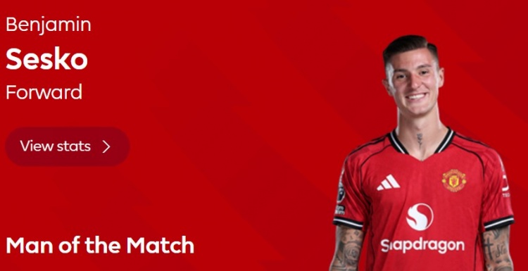 梅开二度,英超官方:舍什科当选曼联2-2伯恩利全场最好球员