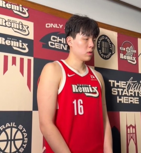 直播吧12月16日讯G联赛开季赛,扯破之城混音队主场116-110斯托克顿国王队,赛后杨瀚森采纳了媒体采访。
