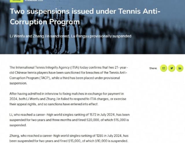 值得一提的是,在 11 月份,ITIA 刚处罚了 3 名中国选手(李文夫、张瑾、陆鹏宇)。短短 1 个月,4 位中国选手被 ITIA 处罚,这让中国网协感受到了压力。在声明中,网协示意将健合座制:"咱们一要强化风险结实,加强行业处分;二要健全轨制体系,筑牢诚信根基;三要坚握系统想维,加强靶向处分。"