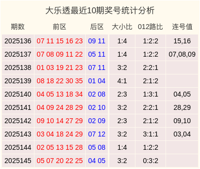 最近10期大乐透奖号统计表