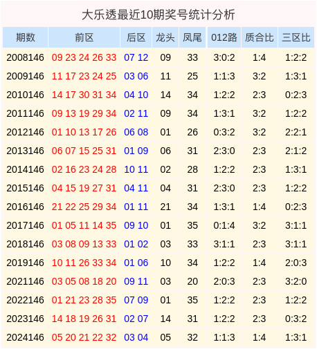 大乐透第2025146期推选: