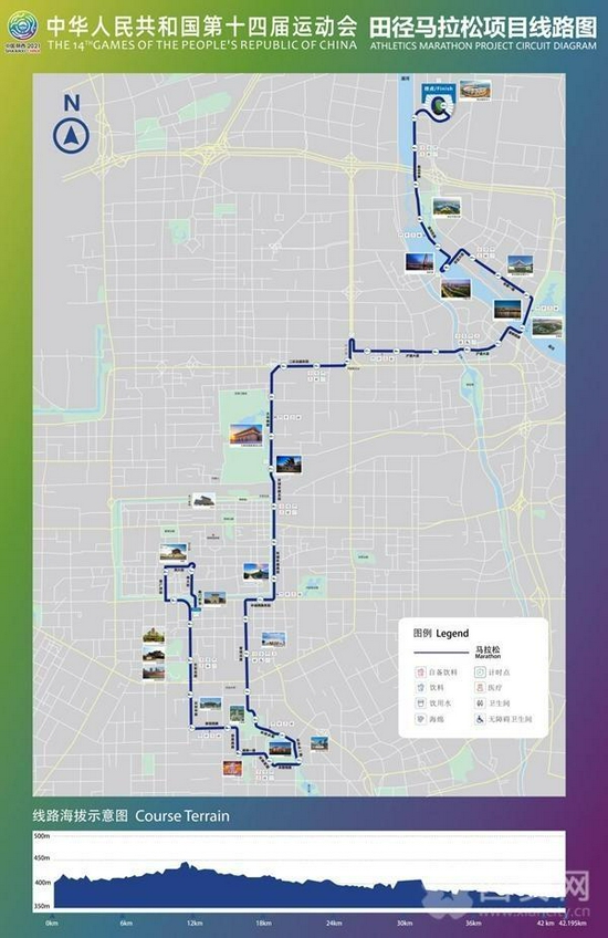 十四运田径马拉松款式全程42.195公里,赛说念以雍容大气的古城墙永宁门为开头,穿越整座城市,最终抵达西安奥体中心田径场。
