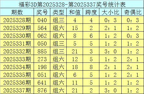 上期回来:福利彩票3D第2025337期奖号为876。