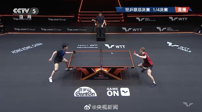 WTT香港总决赛男单1/4决赛,王楚钦顺服法国选手艾利克斯·勒布伦,晋级四强。