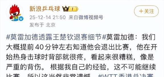 王楚钦的背伤情况被曝光了,WTT也改了总决赛的赛制。