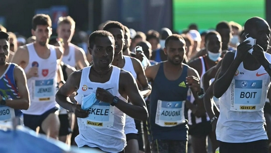 19公里不到,贝克勒运行出现掉队迹象,到了20公里被拉下进步了30米。