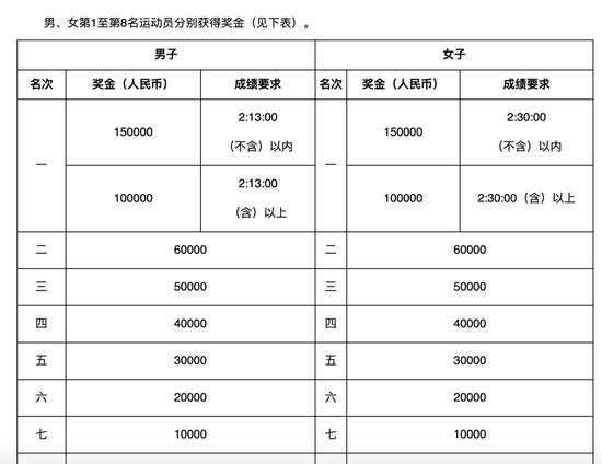 10月31日开跑的成齐马拉松,全马冠军跑进2小时13分,粗略取得15万元的奖金,即使跑不进成绩门槛,也粗略拿走10万元,这么的缔造应该能吸引到多量精英选手前来参赛。