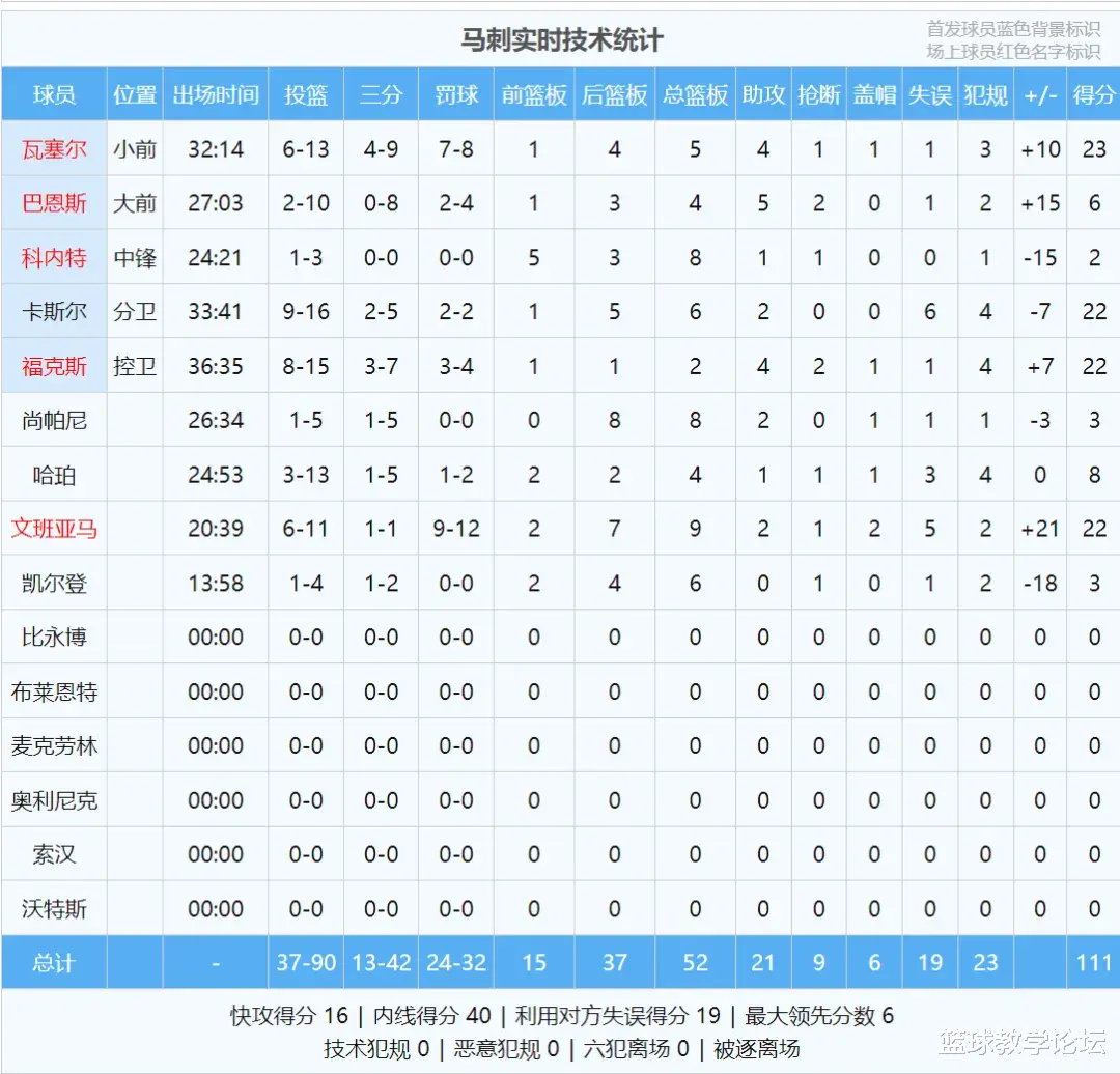 马刺四东说念主得分20+:瓦塞尔23分5板4助、文班亚马22分9板2助2帽、福克斯22分2板4助2断、卡斯尔22分6板2助。亚历山大空砍29分4板5助。决赛本领是12月17日上昼9点半,马刺vs尼克斯!终末望望比赛数据,说说你的模式: