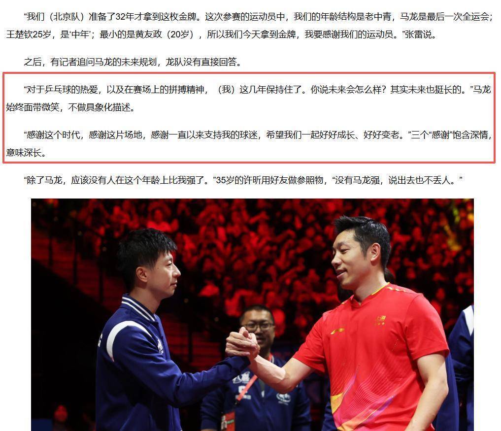 “这是马龙终末一次全运会……”